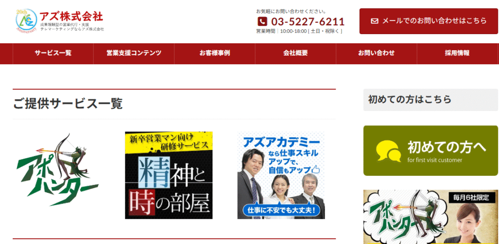 アズ株式会社は、営業支援やマーケティング支援を組み合わせた営業代行サービスを展開する会社です。