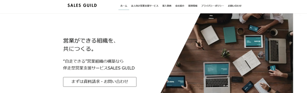 セールスギルド株式会社は、BtoB向けの営業戦略支援と営業代行を行う会社です。