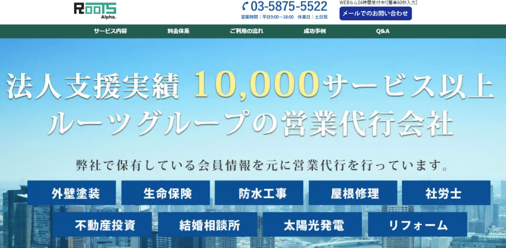 ルーツアルファ株式会社は、営業戦略立案から実行までを支援する営業代行会社です。