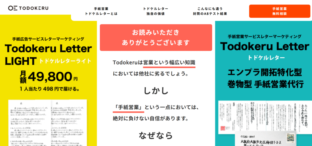 株式会社Todokeruは、手紙やダイレクトアプローチを活用した営業支援を行う会社です。