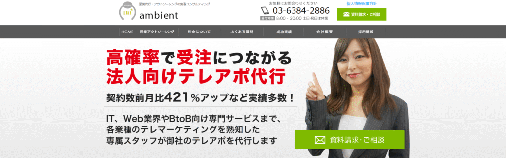 株式会社ambientは、BtoB領域を中心に営業代行サービスを提供する会社です。