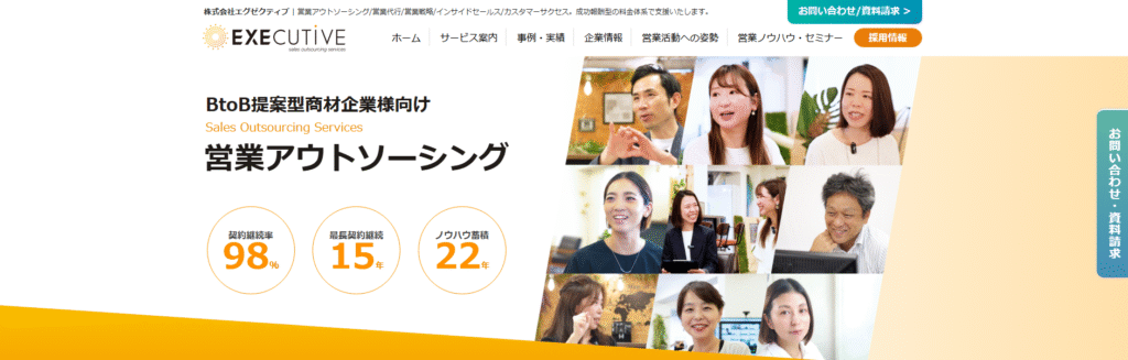 株式会社エグゼクティブは、法人向けの新規開拓営業代行を中心にサービスを展開する会社です。
