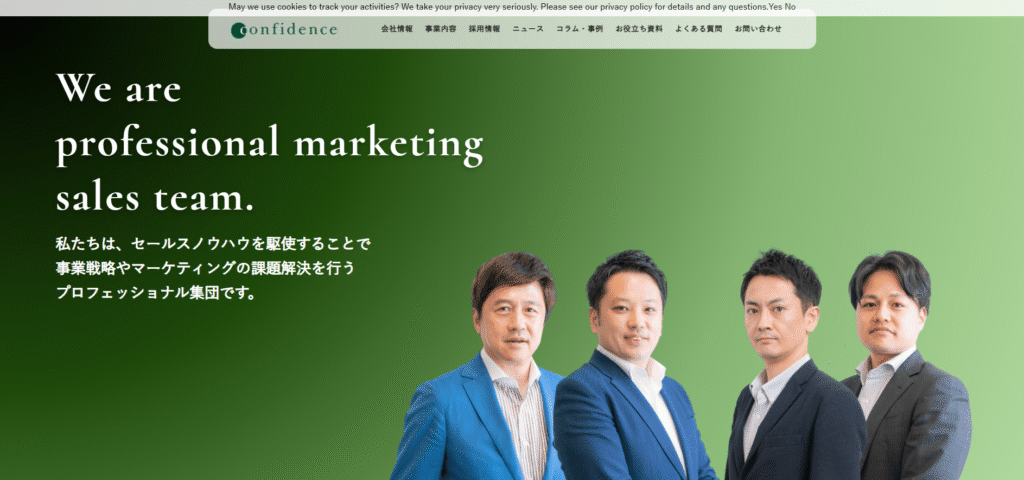 株式会社コンフィデンスは、営業支援やマーケティング施策を組み合わせた営業代行サービスを提供する会社です。