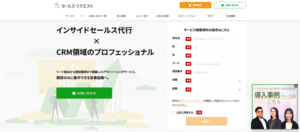 株式会社セールスリクエストは、法人向けインサイドセールスに特化した営業代行会社です。