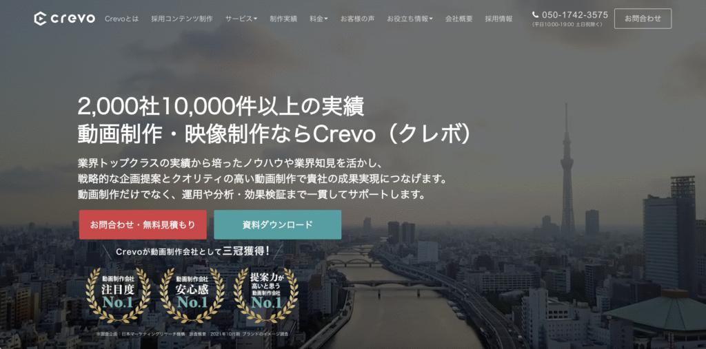 Crevo株式会社は、東京を拠点として、2,000社・10,000件以上の制作実績を持つ動画制作会社です。