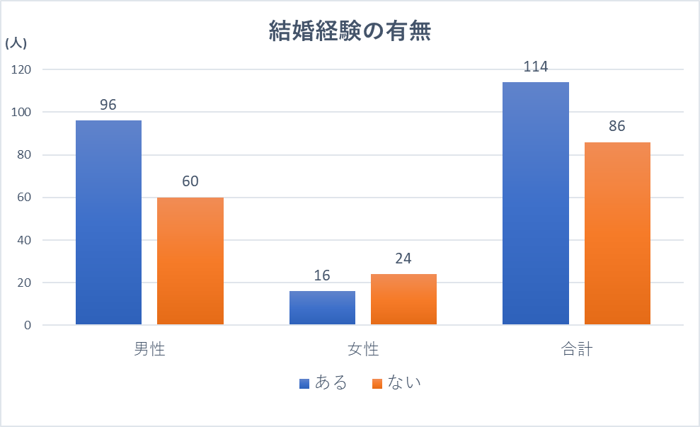 まずは性別毎の結婚有無の現状について集計結果を提示いたします。