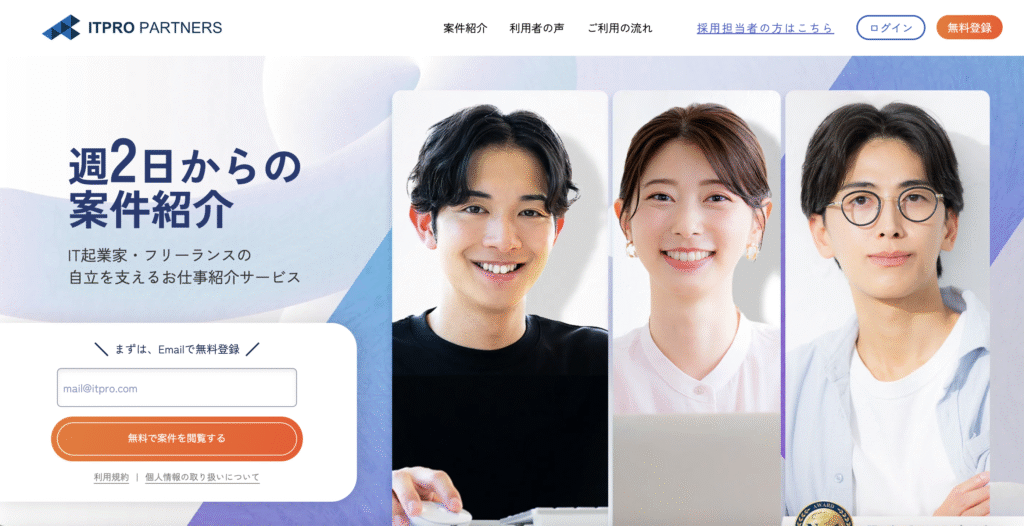 ITプロパートナーズは、サービス利用企業数 5,000社以上を誇るITフリーランスエンジニアの案件紹介エージェントです。