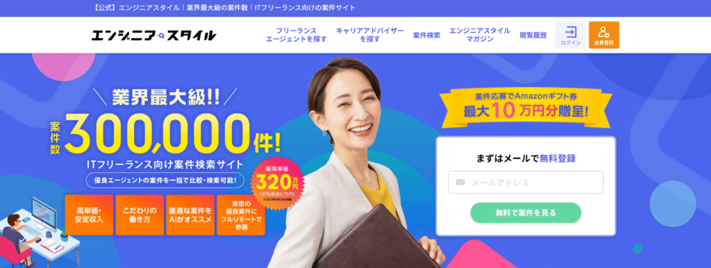エンジニアスタイルは、複数エージェントの案件を一括検索できるフリーランスITエンジニア向けプラットフォームです。