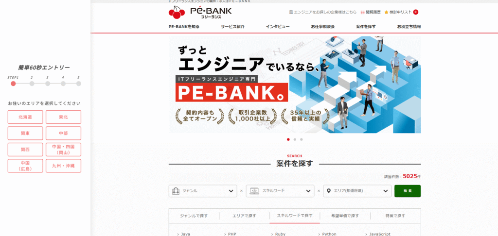 PE-BANKは、30年以上の運営実績を持つフリーランスエンジニア支援サービスです。