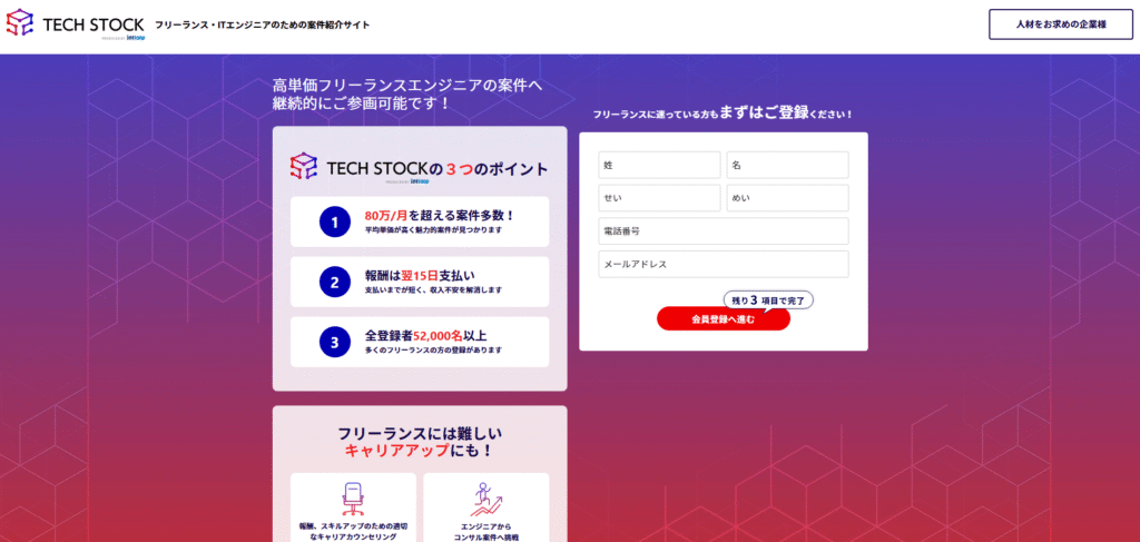 テックストックは、高単価・エンド直請け案件を数多く扱う老舗エージェントです。