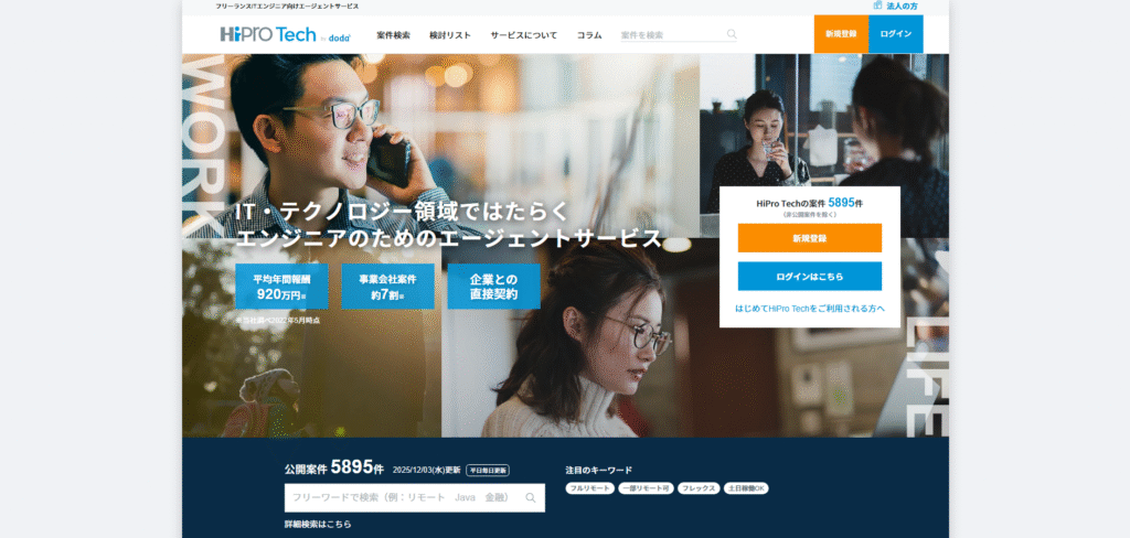 HiPro Techは、プロフェッショナル人材向け支援に強いパーソルが提供するエンジニア向けエージェント。