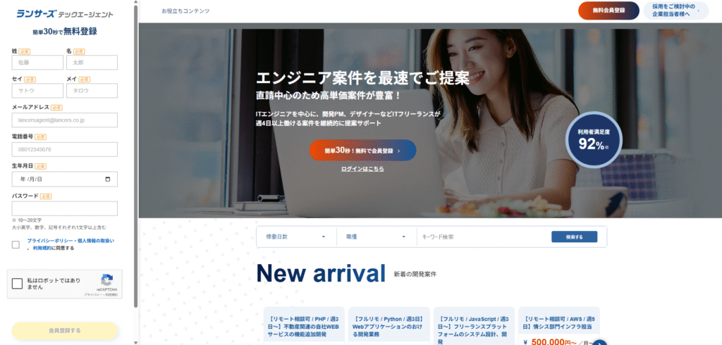 ランサーズテックエージェントは、ランサーズが運営するITエンジニア特化型エージェントです。AI・Web・アプリなどの開発案件に強く、フルリモートや高単価案件が多数。大手企業の案件も多く、クラウドソーシングの運用実績を活かしたマッチングが特徴です。
