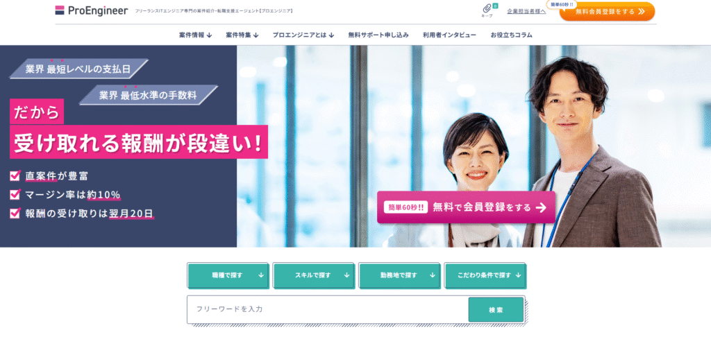 ProEngineerは、ITエンジニア専門のフリーランス案件紹介エージェントです。
