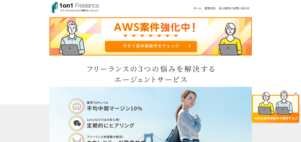 1 on 1 Freelanceは、フリーランスITエンジニア向けエージェントで、登録者ひとりに対して「専属カウンセラー1人」が一貫してサポートする体制を取っています。