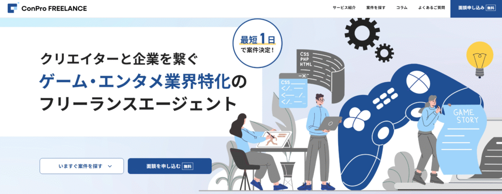 ConPro FREELANCEは、もともとゲーム・エンタメ業界特化のフリーランスマッチングサービスとして始まり、最近では Web/IT 業界まで対象を拡大したエージェントです。