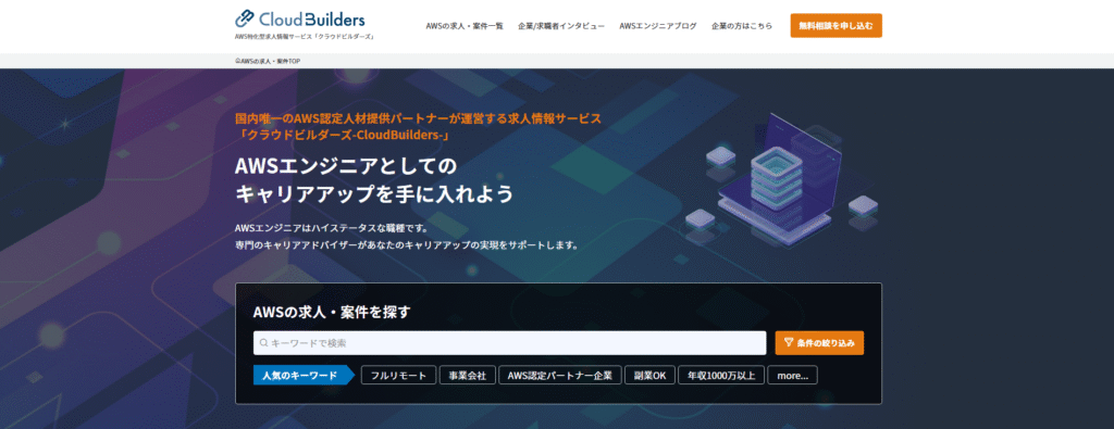 CloudBuildersは、クラウドサービス Amazon Web Services(AWS) に特化した求人・案件紹介サービスです。