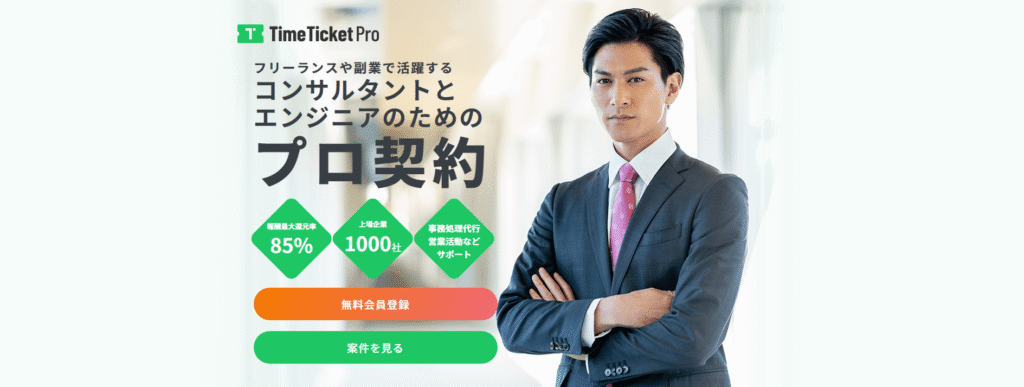 TimeTicket Proは、IT エンジニアやデザイナー向けのフリーランス案件マッチングサービス。