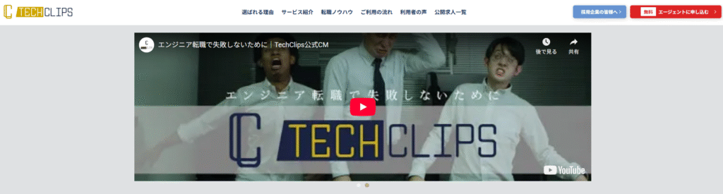 TechClips Agentは、ITエンジニアの転職およびフリーランス支援に特化したエージェントサービス。