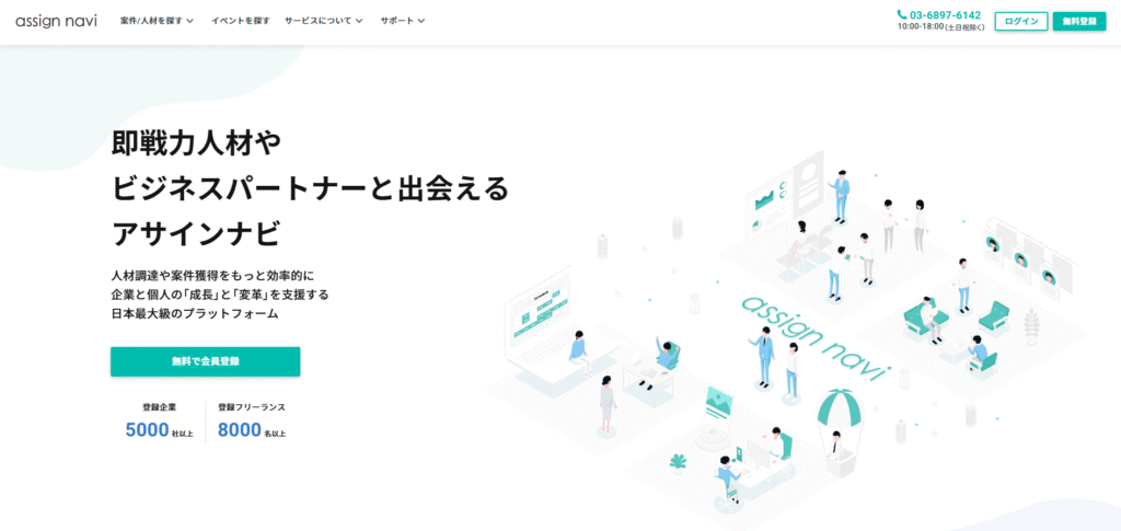アサインナビは、IT企業とエンジニアをつなぐマッチングサービスで、エンジニア・ITコンサルタント向けの案件を幅広く扱います。