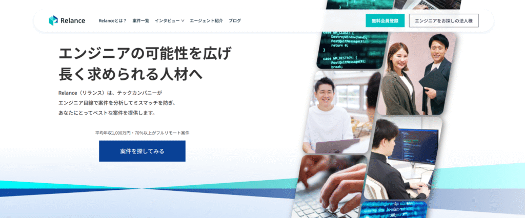 Relanceは、フリーランスのITエンジニア向けに高単価案件を紹介するエージェントサービスです。