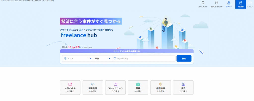 フリーランスHubは、エンジニア・クリエイター向け案件を横断検索できる求人・案件プラットフォームです。