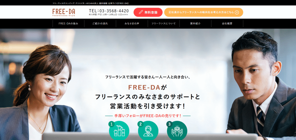 FREE‑DAは、フリーランスITエンジニア・クリエイター向けの案件紹介サービスです。