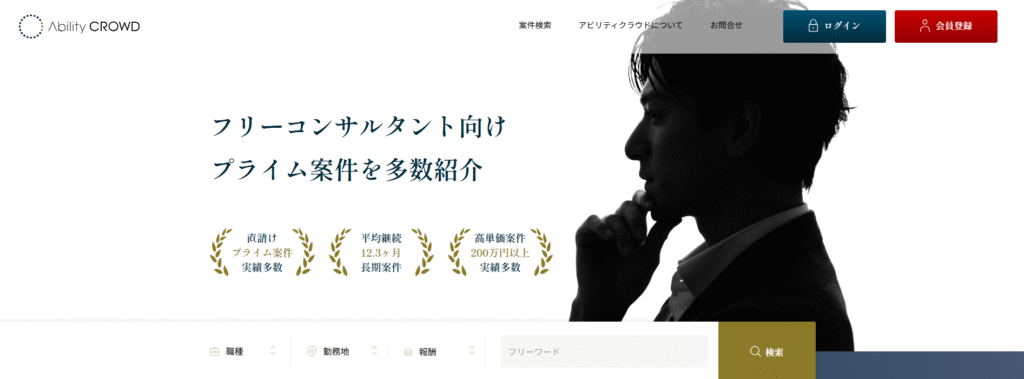 Ability CROWDは、コンサルティング会社グループが運営するフリーコンサルタント向けマッチングサービスで、特にIT・DX領域の案件に強みがあります。