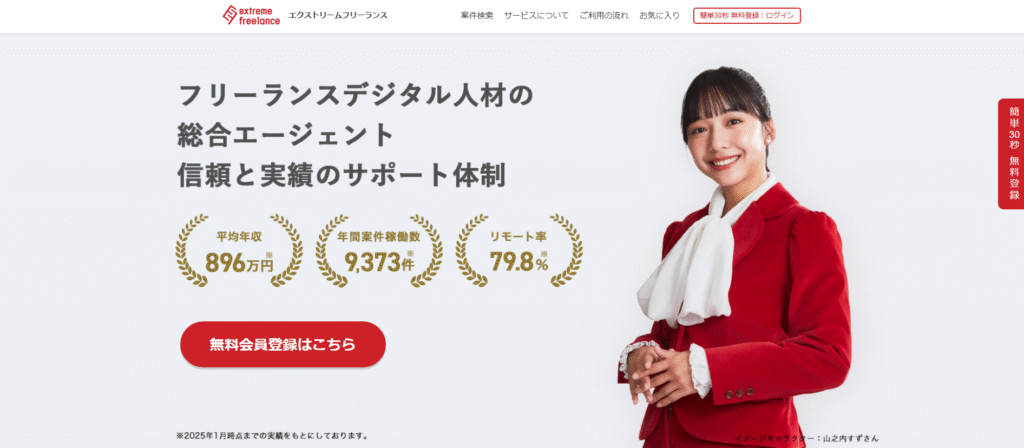 即日払い対応や専属担当による手厚いサポート、福利厚生も充実しており、安定収入と安心感を両立できます。エンド直請け案件が豊富で、スキルに応じた高単価案件を効率的に探せるフリーランス向けサービスです。