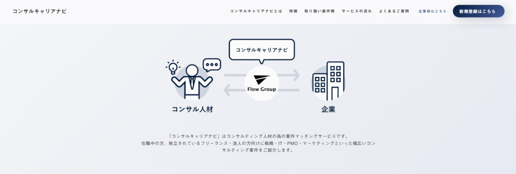戦略・IT・業務コンサルやPMOなど多様な案件を扱っており、案件紹介だけでなく、条件交渉や契約支援まで含めたトータルサポートを提供することを目的としています。