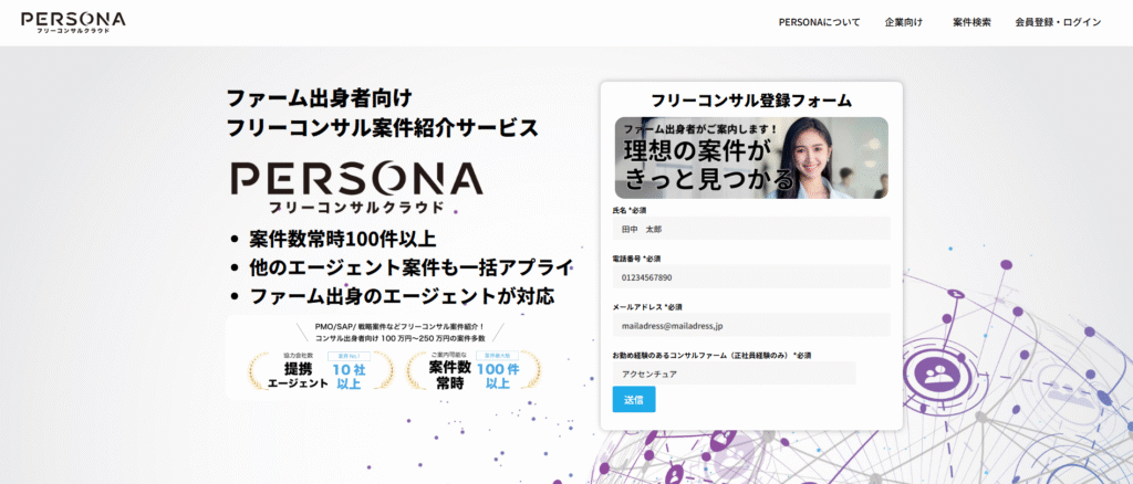 Persona Consultantは、コンサルタントやフリーの専門家と企業をマッチングするサービスです。