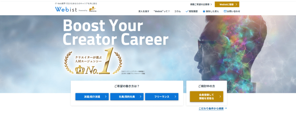Webistは、Web・IT・デジタル分野に強みを持つ人材向けの案件紹介サービスです。