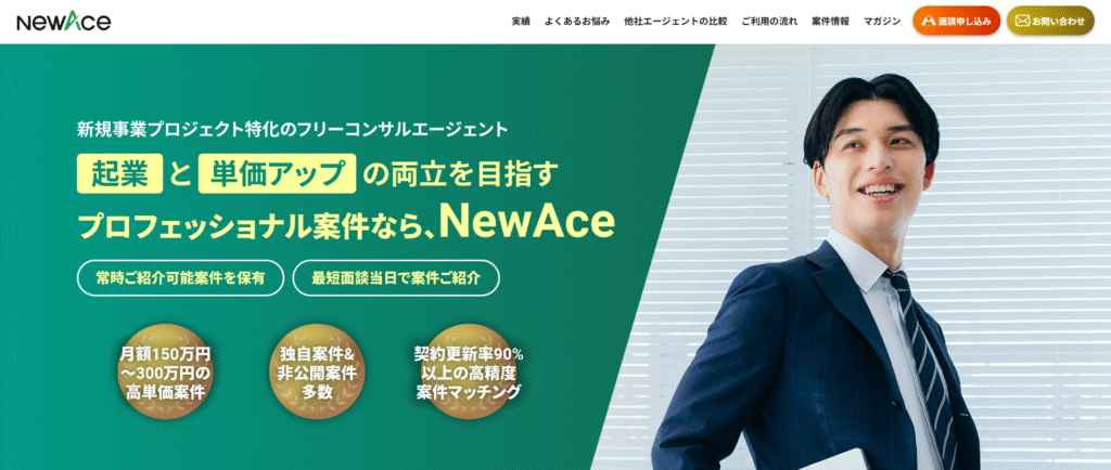 NewAceは、フリーランスや個人事業主向けに仕事の機会を提供するマッチング型サービスです。