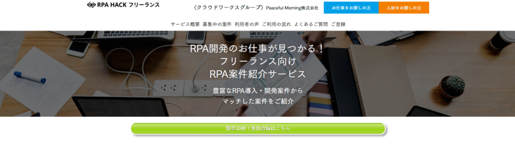 RPA HACKフリーランスは、RPAエンジニア向けの案件紹介と学習支援を行う専門サービスです。