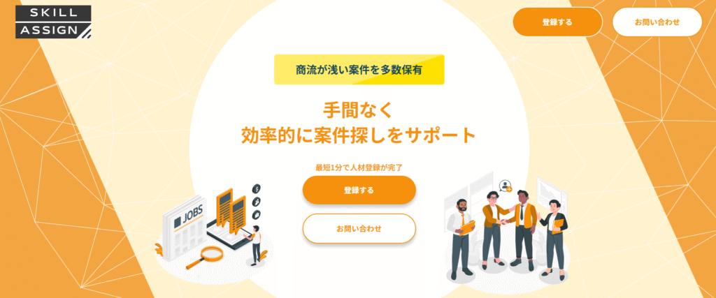 SkillAssignは、IT・DX・業務系スキルを持つフリーランス向けの案件紹介サービスです。