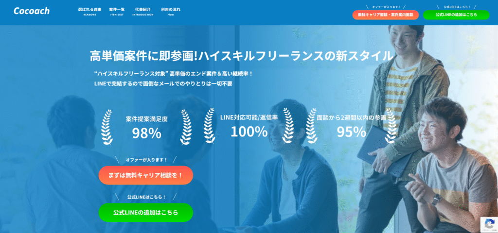 Cocoachは、エンジニア・PM・コンサル・SAPなど多彩な職種の高単価案件を紹介するフリーランス向けサービスです。