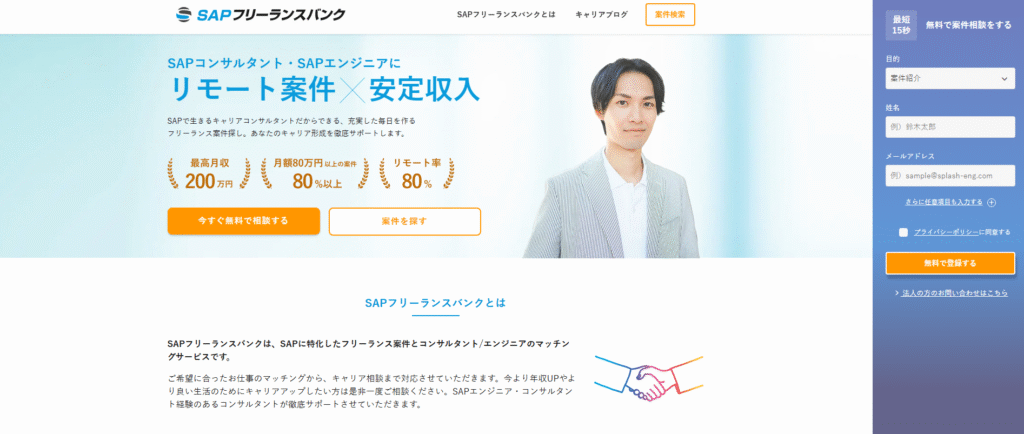 SAPフリーランスバンクは、SAP のコンサルタント/エンジニアに特化したフリーランス案件紹介サービスです。