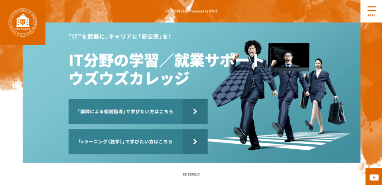 UZUZ COLLEGEは、完全eラーニング型のため自分のライフスタイルに合わせて個別に学習を勧められますが、担当講師から個別ミーティングやチャットでのサポートを受けられるため、挫折せずにプログラミングを学ぶことができます。未経験からでも就業支援があるため、初心者でも安心です。