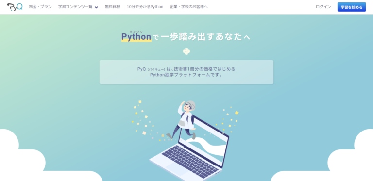 PyQは、プログラミング言語の中でPythonに特化した学習サービスです。入門から業務レベルまで深く学ぶことができ、月額8,130円のスタンダードプランでは、現役エンジニアによるQ&A形式の学習サポートを利用することができます。
