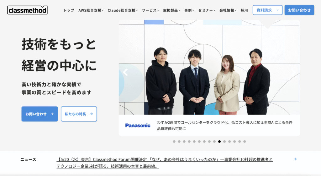クラスメソッド株式会社は、AWSを中心としたクラウド導入支援やシステム開発を行う企業です。