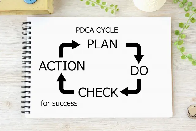 PDCAサイクルとは、Plan(計画)、Do(実行)、Check(評価)、Action(改善)の4つのプロセスを繰り返すことで、目標達成に向けた適切なアクションを打つことができる方法です。