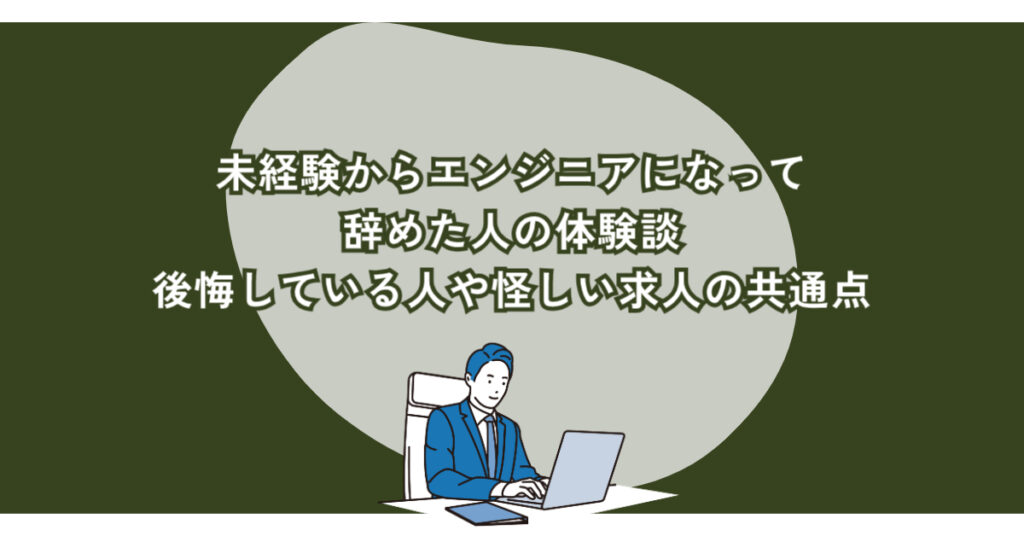 未経験からエンジニアになって辞めた人の体験談をもとに、後悔している人の共通点や、怪しい未経験歓迎求人の特徴をわかりやすく解説します。 -