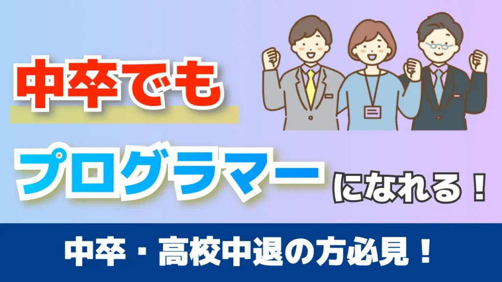 学歴が中卒だけど、プログラマーって目指せるのかな…? 学習意欲をもってスキルを磨けば、どんな学歴の人でもプログラマーになれますよ。 中卒や高校中退の方がエンジニアやプログラマーになることは、可能なのでしょうか?また、そうした職業に就いた場合... -