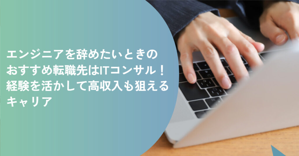 エンジニアを辞めたいと感じたときの転職先としてITコンサルを解説。経験を活かせる理由や高収入を狙うポイントを整理します。 -