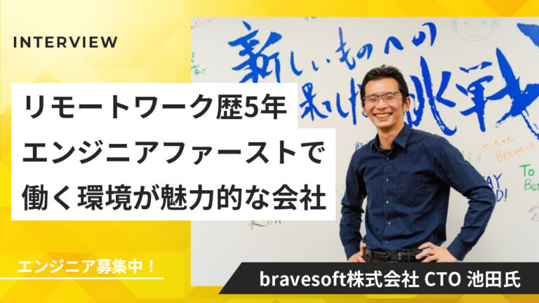 bravesoft株式会社 CTO 池田氏|リモートワーク歴5年・エンジニアファーストで働く環境が魅力的な会社。エンジニア募集中!