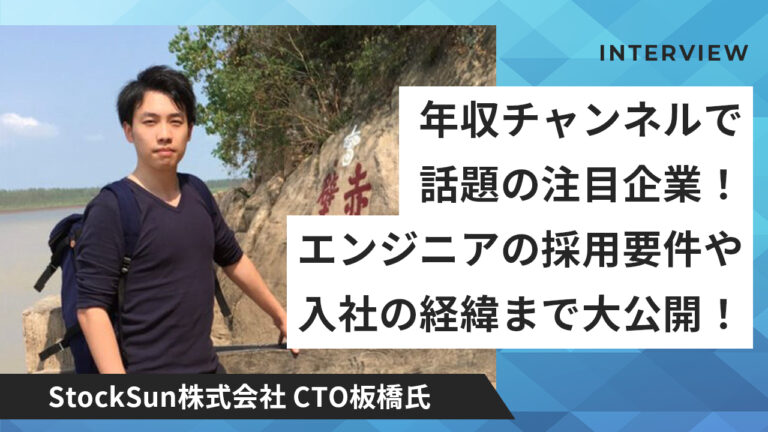 StockSun株式会社 CTO板橋氏|年収チャンネルで話題の注目企業!エンジニアの採用要件や入社の経緯まで大公開!